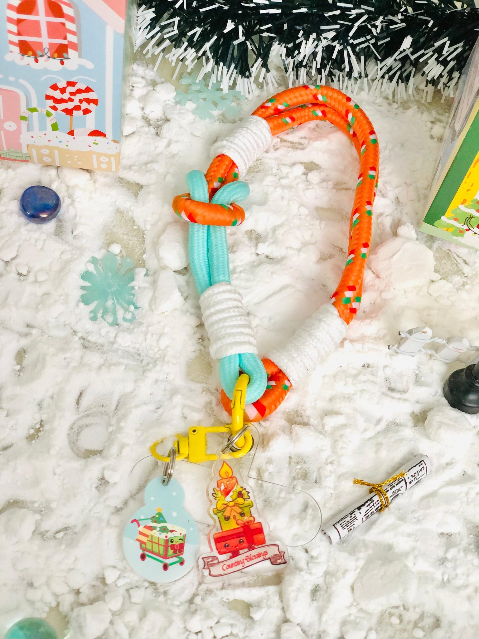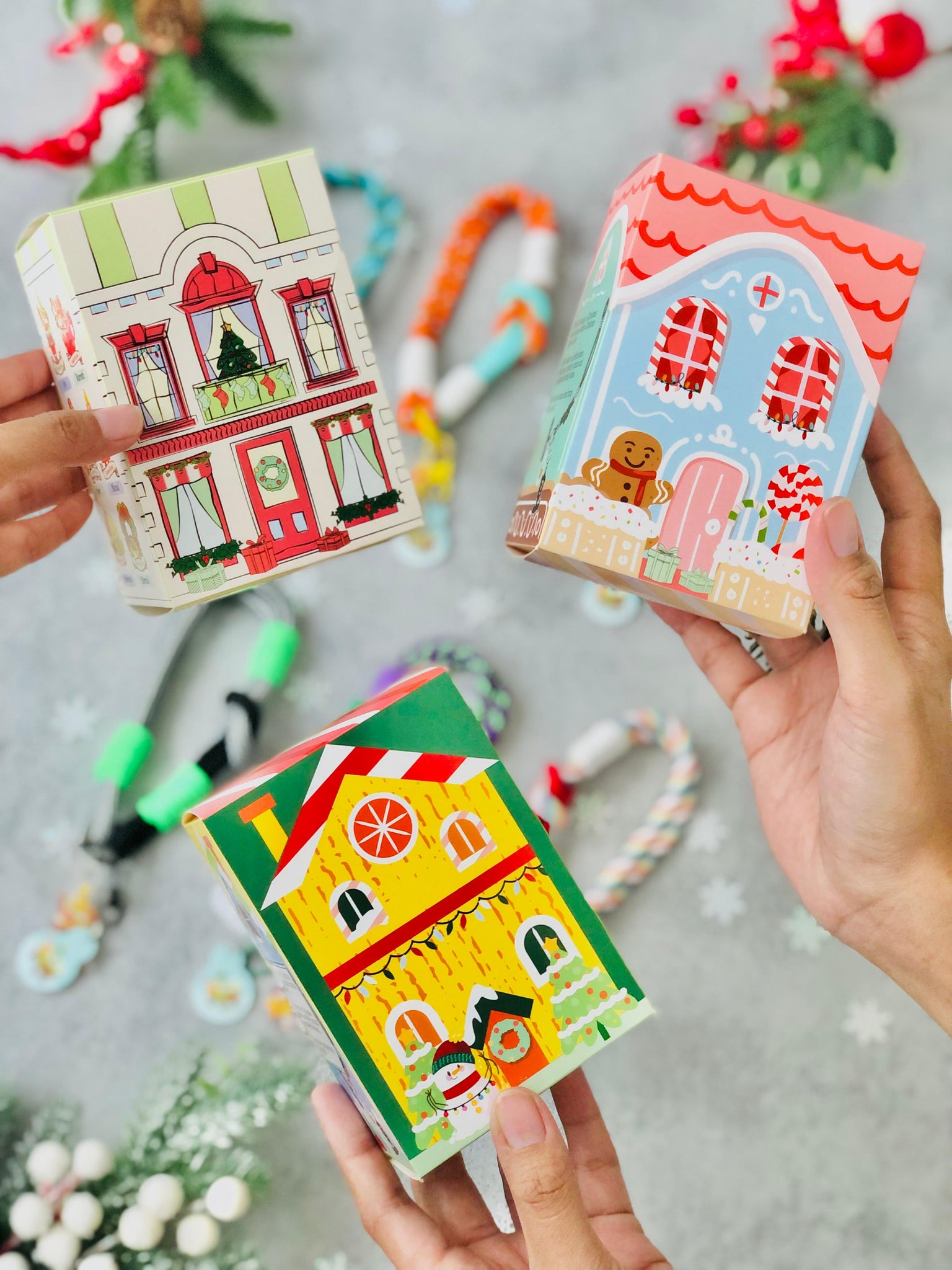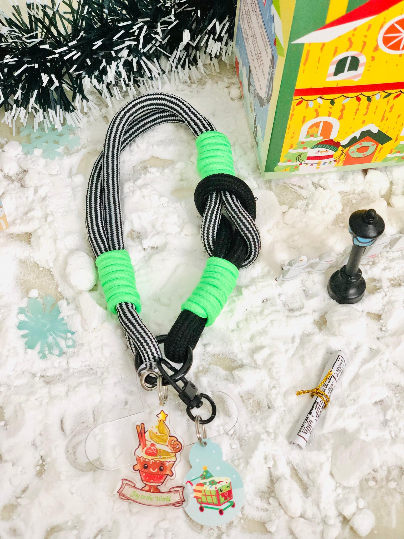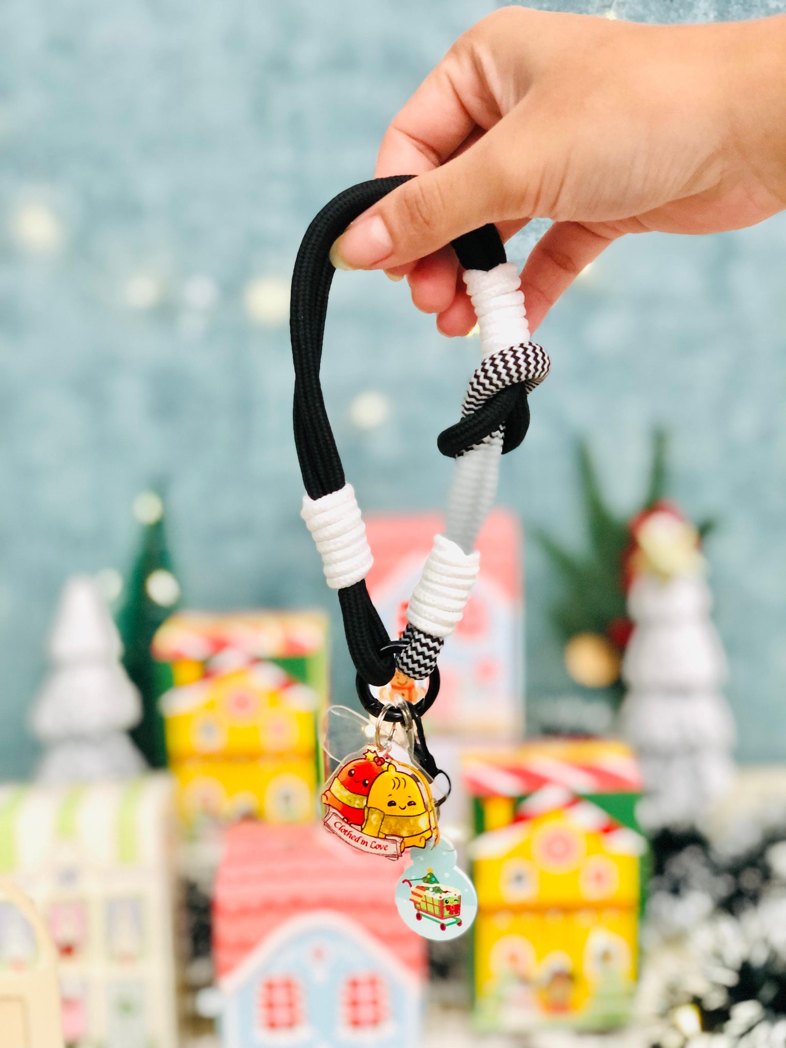 Celebrate the season with our Christmas Surprise Box featuring a Phone Wrist Strap and a Mystery Christmas Charm and a supermarket trolley token, beautifully packed in a special Christmas House Box!